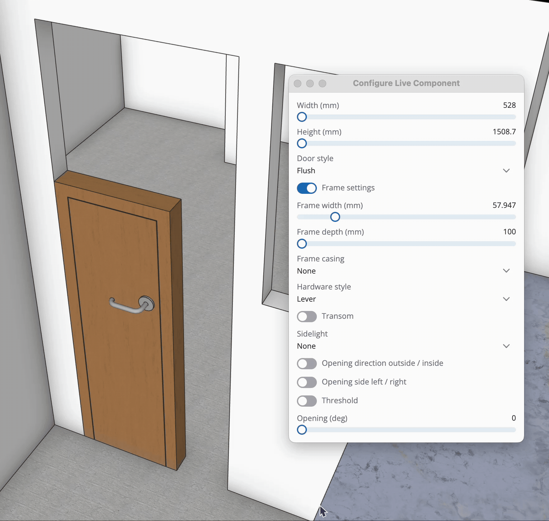 - A Live Component can have a Size frame which can be activated and used by a user in SketchUp using the Scale Tool.